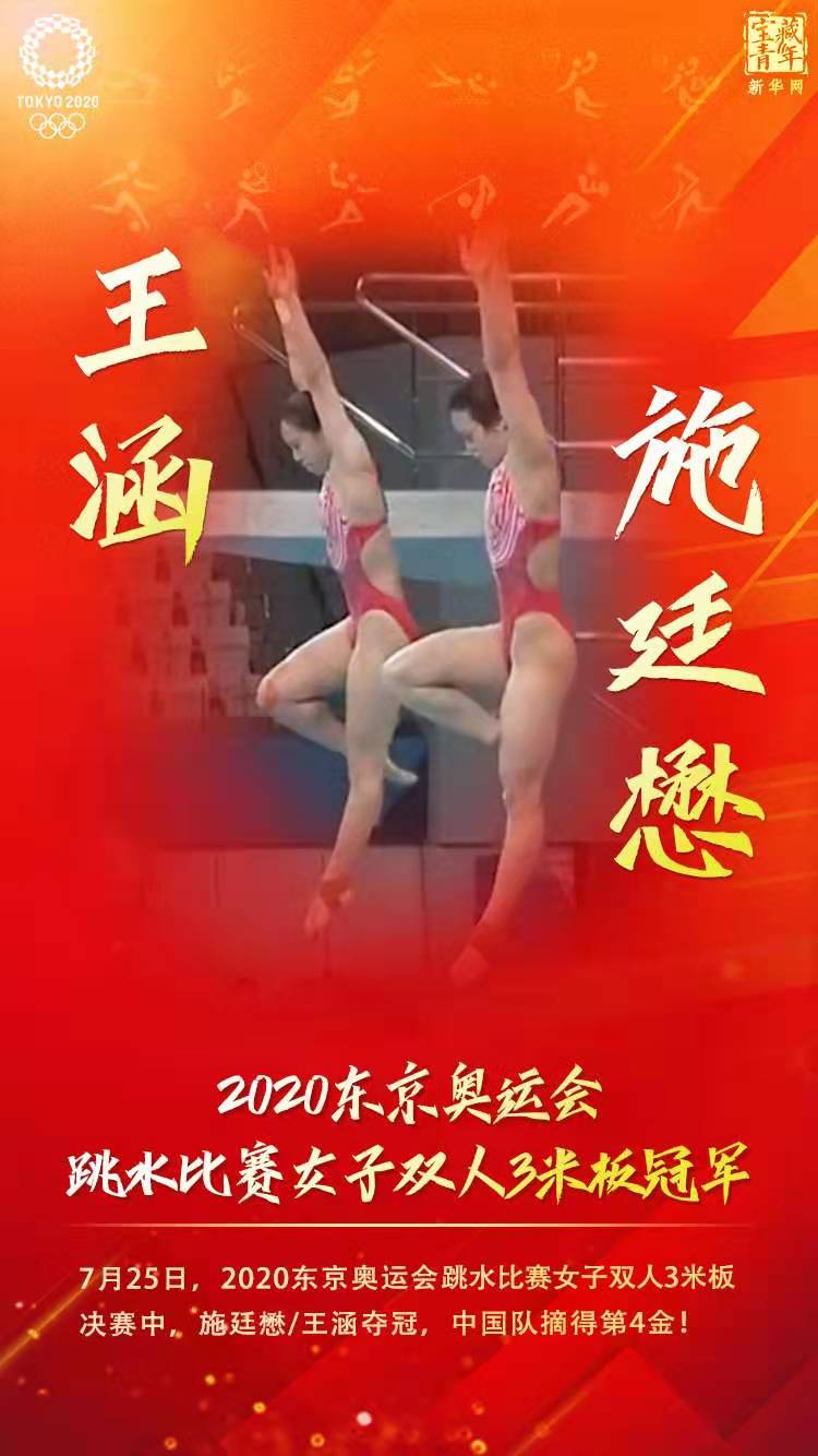 快訊:中國組合施廷懋/王涵奪得東京奧運(yùn)會(huì)女子雙人3米跳板冠軍。