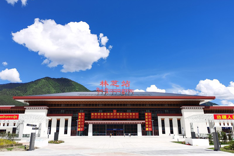 林芝站設(shè)有3座站臺,6條到發(fā)線。站房設(shè)計運用雪白、藏紅等獨具民族特色的色彩,體現(xiàn)雅魯藏布江大峽谷巨大的山水落差、豐富的生態(tài)氣候和壯麗的自然景色,彰顯“生態(tài)林芝”的理念。