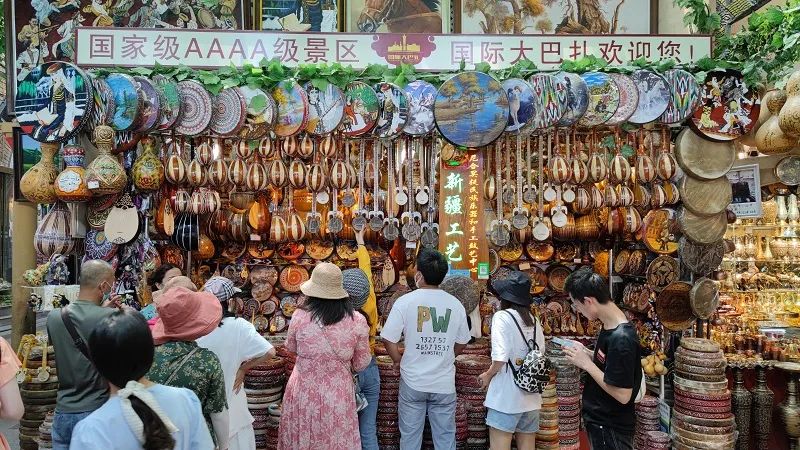7月的新疆進(jìn)入旅游旺季,位于烏魯木齊市城南的新疆國(guó)際大巴扎連日來(lái)游人如織。2021年7月27日,新疆維吾爾自治區(qū)舉辦新疆國(guó)際大巴扎專場(chǎng)新聞發(fā)布會(huì),邀請(qǐng)了在新疆國(guó)際大巴扎工作、經(jīng)商的7位少數(shù)民族群眾代表,講述他們敢創(chuàng)新、講誠(chéng)信、抓住商機(jī),通過(guò)勤勞努力過(guò)上幸福生活的故事。
