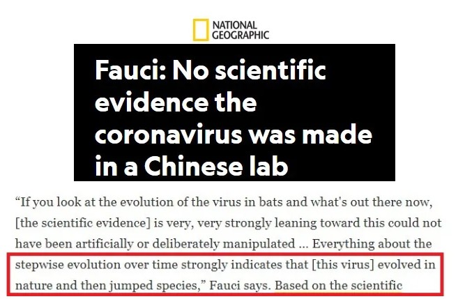 去年5月,美國國家過敏癥和傳染病研究所所長福奇向《美國國家地理》雜志表示,所有關(guān)于逐級進化的證據(jù)都強烈指向,新冠病毒是在自然界進化完成,然后再跨越物種傳到人身上的。