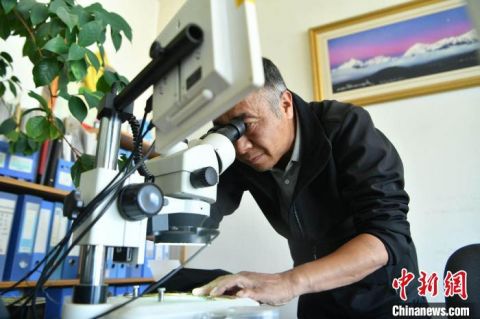 圖為方震東在做植物研究。 劉冉陽(yáng) 攝