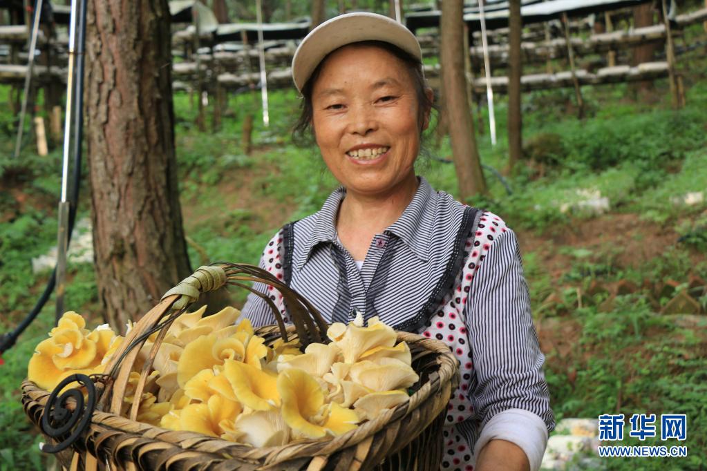 當(dāng)?shù)厝罕娫谫F州省六盤水市六枝特區(qū)月亮河鄉(xiāng)的花德河國(guó)有林場(chǎng)內(nèi)收獲菌類(2021年7月24日攝)。