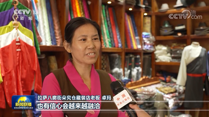 拉薩八廓街朵究倉(cāng)藏裝店老板 卓瑪:大家關(guān)系特別好,我很喜歡這樣的環(huán)境,也有信心會(huì)越來越融洽。
