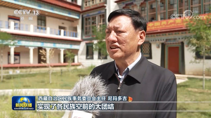西藏自治區(qū)民族事務(wù)委員會(huì)主任 尼瑪多吉:在中國(guó)共產(chǎn)黨的堅(jiān)強(qiáng)領(lǐng)導(dǎo)下,實(shí)現(xiàn)了各民族空前的大團(tuán)結(jié)。尤其是黨的十八大以來,在以習(xí)近平同志為核心的黨中央堅(jiān)強(qiáng)領(lǐng)導(dǎo)下,不斷鑄牢中華民族共同體意識(shí),以開放促交往、以發(fā)展促交流、以繁榮促交融,像石榴籽一樣緊緊擁抱在一起的民族關(guān)系不斷鞏固發(fā)展。(總臺(tái)記者 曾曉東 陳琴 德慶白珍 王磊 西藏臺(tái) 李旭 多吉仁青 拉巴次仁)