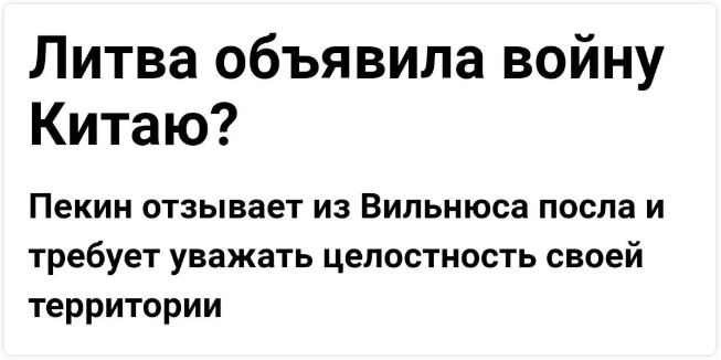 這是俄羅斯媒體“自由新聞網(wǎng)”對(duì)立陶宛最近一系列反華行動(dòng)的諷刺。這篇名為《立陶宛對(duì)中國(guó)宣戰(zhàn)?》的報(bào)道中寫(xiě)道:立陶宛政府已經(jīng)把自己逼入絕境。