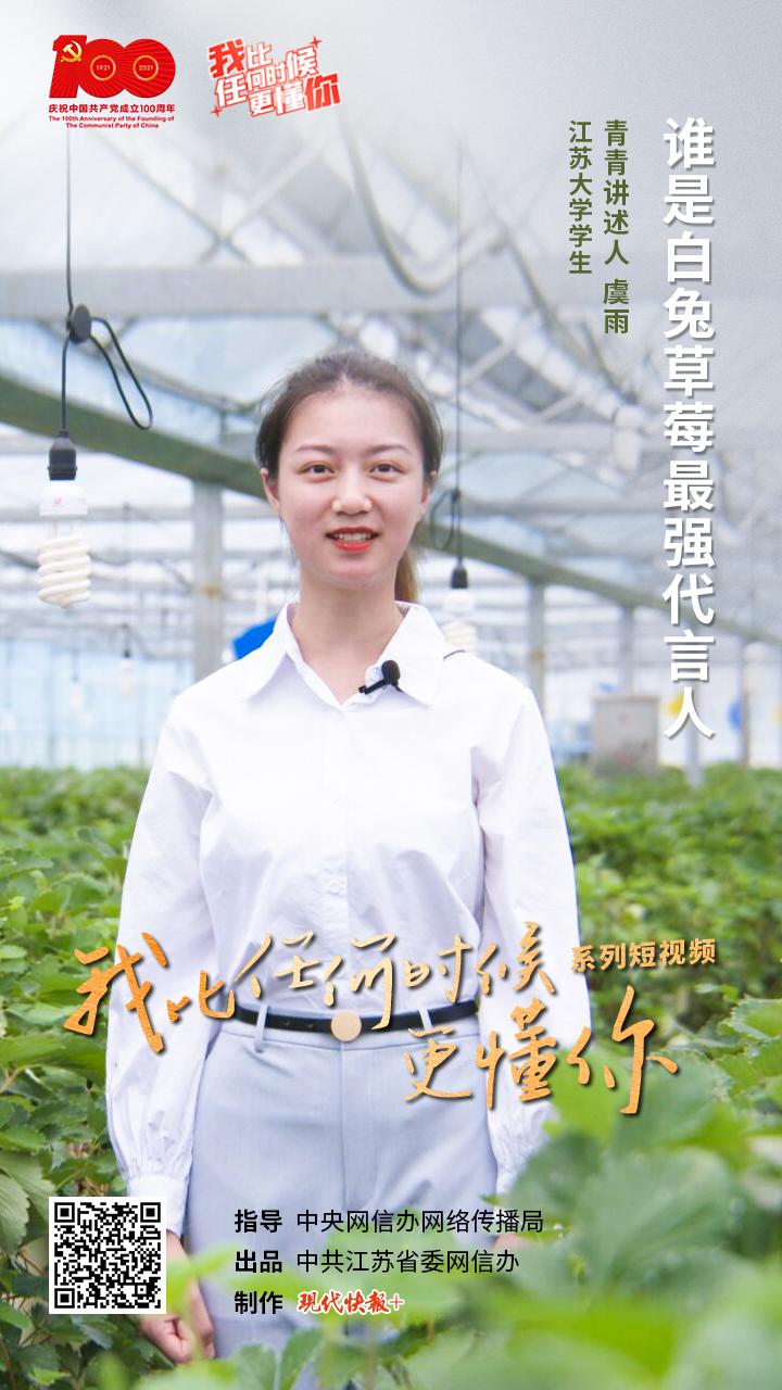 8 月 21 日," 我比任何時(shí)候更懂你 " 系列短視頻第 28 集《誰是白兔草莓最強(qiáng)代言人?》上線,本集青青講述人是江蘇大學(xué)學(xué)生虞雨。