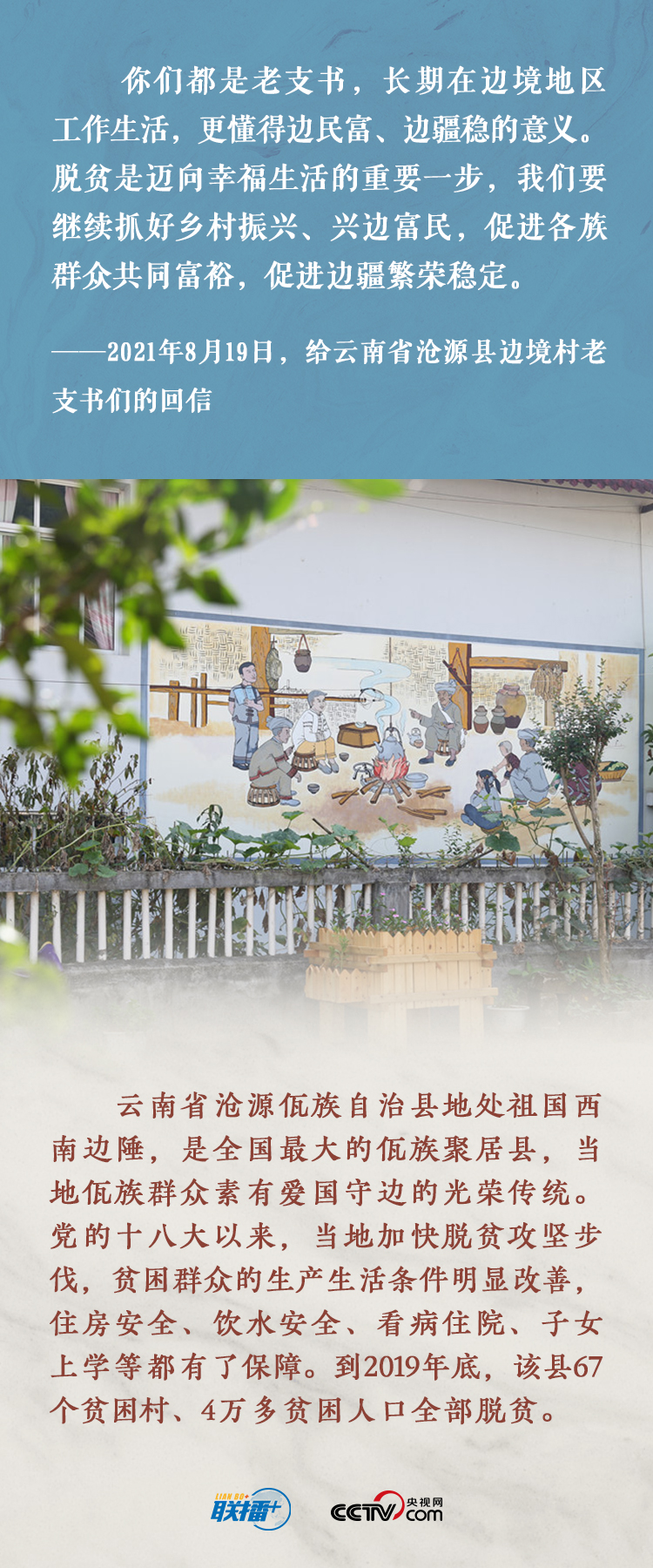 8月19日,習(xí)近平總書記給云南省滄源佤族自治縣邊境村的老支書們回信,勉勵他們發(fā)揮模范帶頭作用,引領(lǐng)鄉(xiāng)親們建設(shè)好美麗家園,維護(hù)好民族團(tuán)結(jié),守護(hù)好神圣國土。