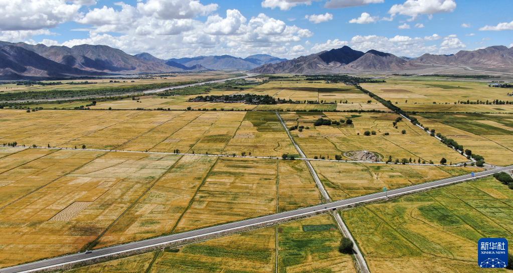當(dāng)下,在西藏河谷地帶成片的青稞地里,微風(fēng)吹麥浪,一片金黃,如同農(nóng)民心中蕩起的幸福漣漪。