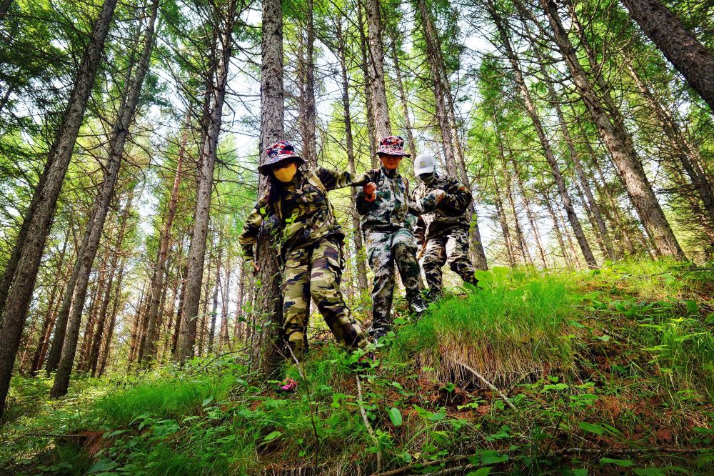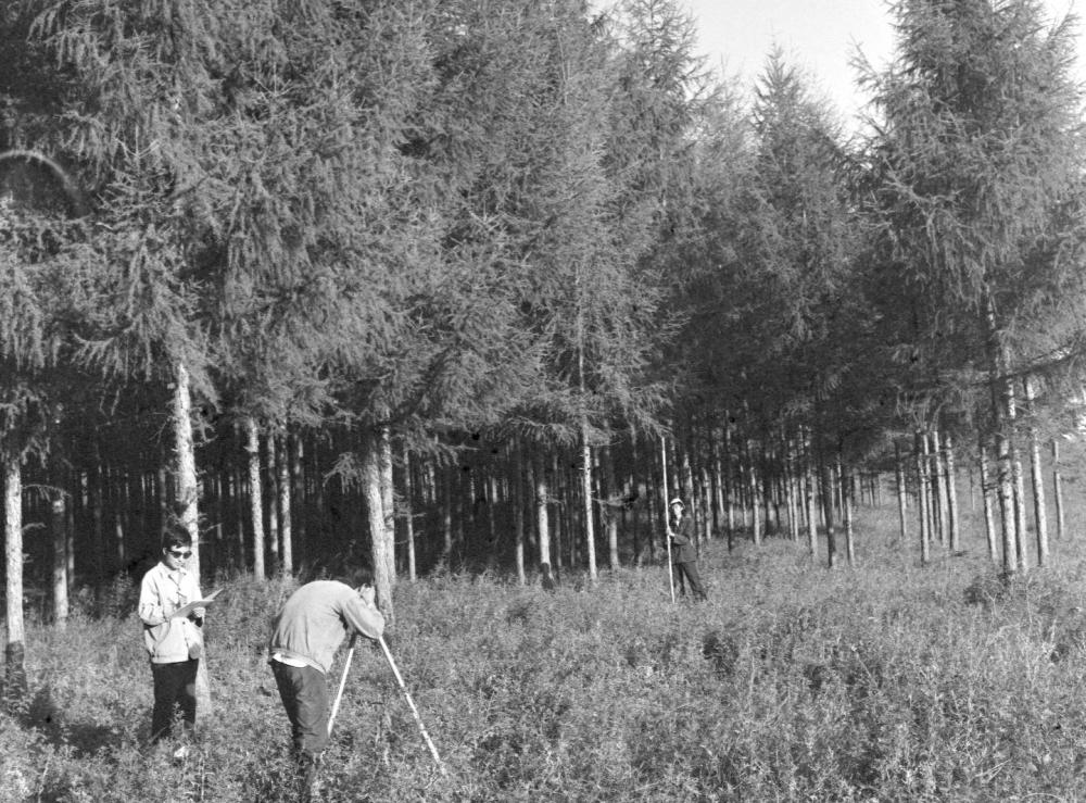↑林業(yè)調(diào)查隊(duì)員在塞罕壩林場進(jìn)行森林調(diào)查(20世紀(jì)80年代資料照片)。