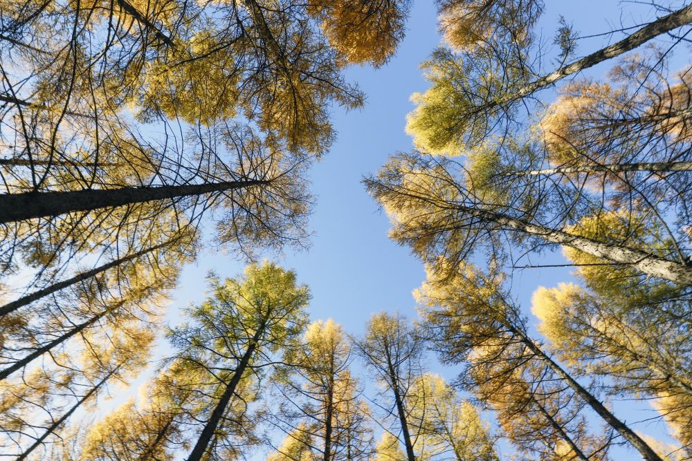 ↑這是塞罕壩機(jī)械林場內(nèi)的樹木(2018年10月7日攝)。