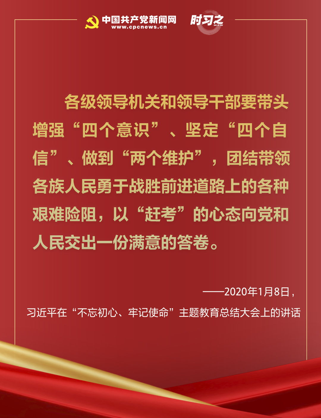 “所有領(lǐng)導(dǎo)干部和全體黨員要繼續(xù)把人民對(duì)我們黨的‘考試’、把我們黨正在經(jīng)受和將要經(jīng)受各種考驗(yàn)的‘考試’考好,努力交出優(yōu)異的答卷。”習(xí)近平這樣要求。