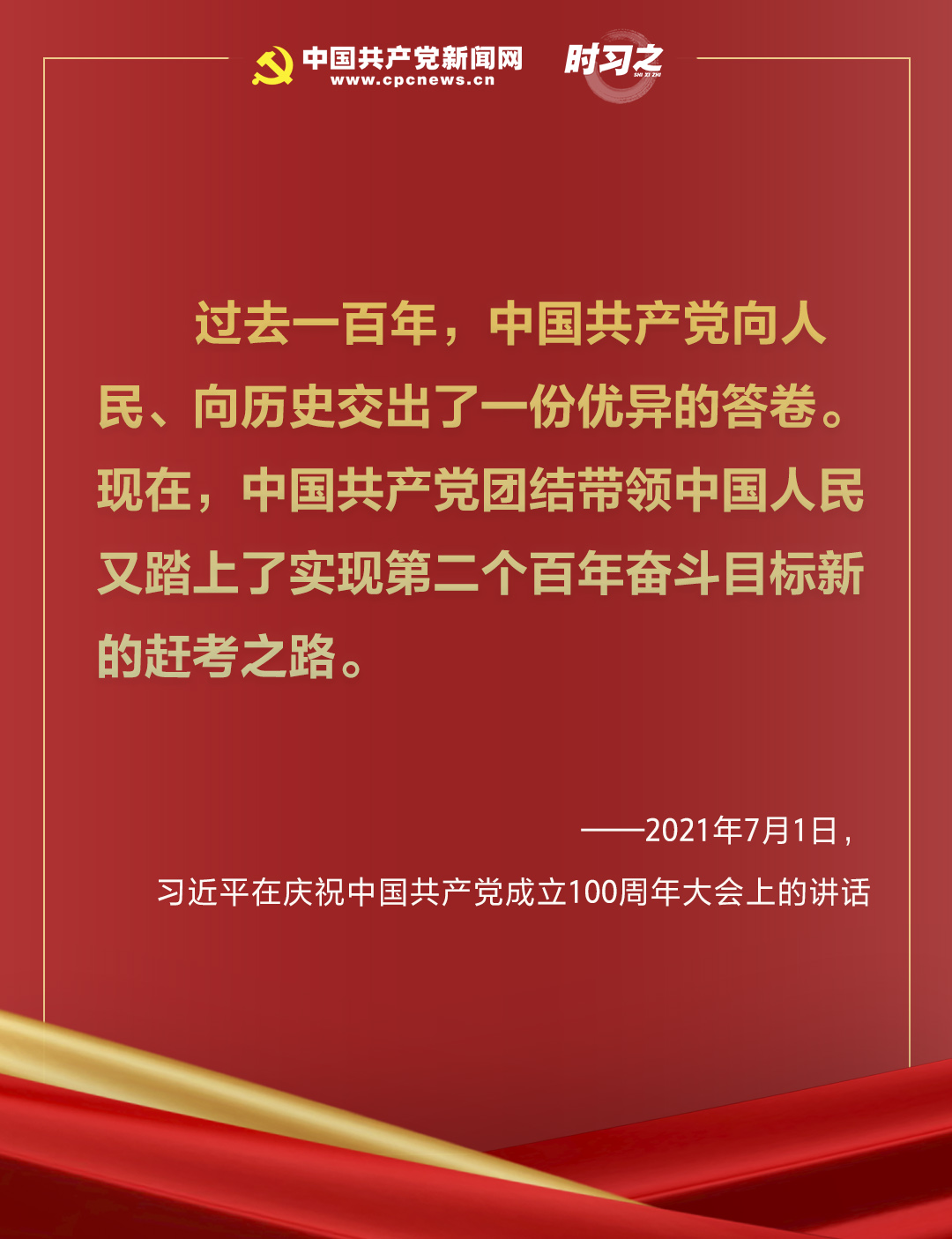 2021年7月,建黨百年的輝煌時(shí)刻,習(xí)近平總書記在慶祝中國(guó)共產(chǎn)黨成立100周年大會(huì)上莊嚴(yán)宣告,“現(xiàn)在,中國(guó)共產(chǎn)黨團(tuán)結(jié)帶領(lǐng)中國(guó)人民又踏上了實(shí)現(xiàn)第二個(gè)百年奮斗目標(biāo)新的趕考之路。”