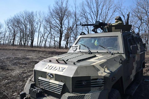△當?shù)貢r間2021年4月,烏克蘭東部地區(qū)頓巴斯,當?shù)匚溲b部隊在邊境巡邏。