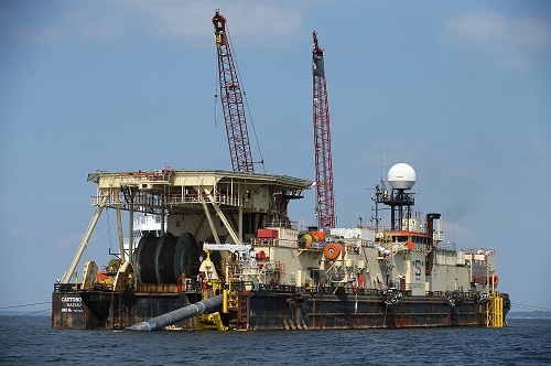 △當?shù)貢r間2018年8月16日,德國盧布明附近的波羅的海,管道船在海里鋪設“北溪-2”天然氣管道。