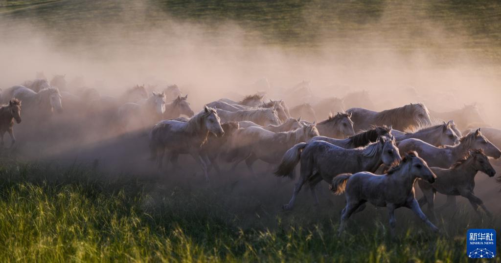 馬群馳騁在內(nèi)蒙古錫林郭勒大草原上(2020年7月31日攝)。新華社記者 連振 攝