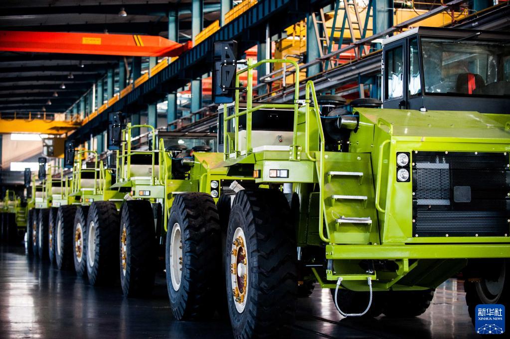 這是內(nèi)蒙古包頭市北重集團(tuán)北方重型汽車股份有限公司某型礦用車裝配線(2015年12月4日攝)。新華社記者 連振 攝