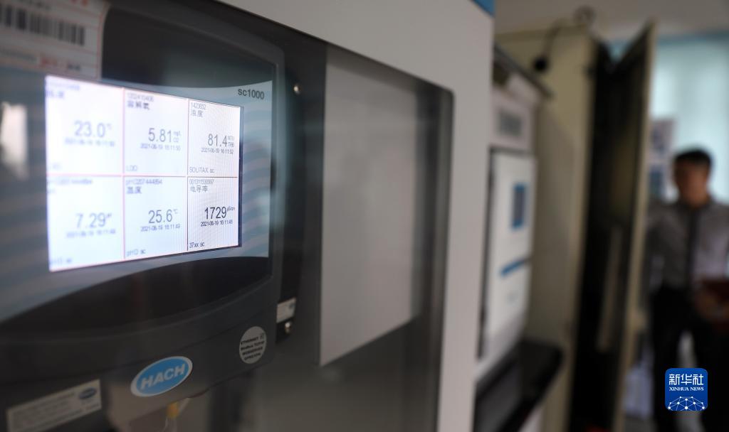 一名工作人員在生態(tài)環(huán)境部設(shè)立的大遼河入?诟浇乃|(zhì)自動監(jiān)測站內(nèi)工作(8月19日攝)。新華社記者 姚劍鋒 攝