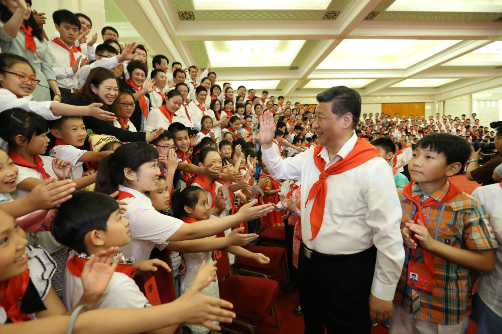 ↑2015年6月1日,習(xí)近平在北京人民大會(huì)堂親切會(huì)見(jiàn)中國(guó)少年先鋒隊(duì)第七次全國(guó)代表大會(huì)全體代表。