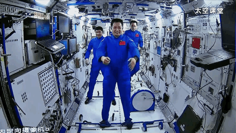 “同學們,你們好!我們現(xiàn)在正在距地球表面約390公里的中國空間站和大家連線。此時此刻,我們所在的天和核心艙,正經(jīng)過祖國的上空! ”