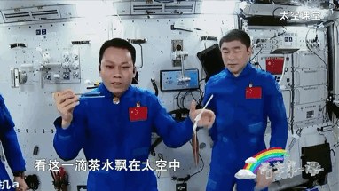 這是因為液體具有表面張力。在地球上的時候,液體受到重力影響比較大,表面張力不顯著,但是在微重力環(huán)境下,液體表面的張力足以使茶水凝聚成一個個肉眼可見的小水球,漂浮在空氣中,同時,筷子和水之間有一定附著力,所以可以輕松地用筷子夾住茶水吃。