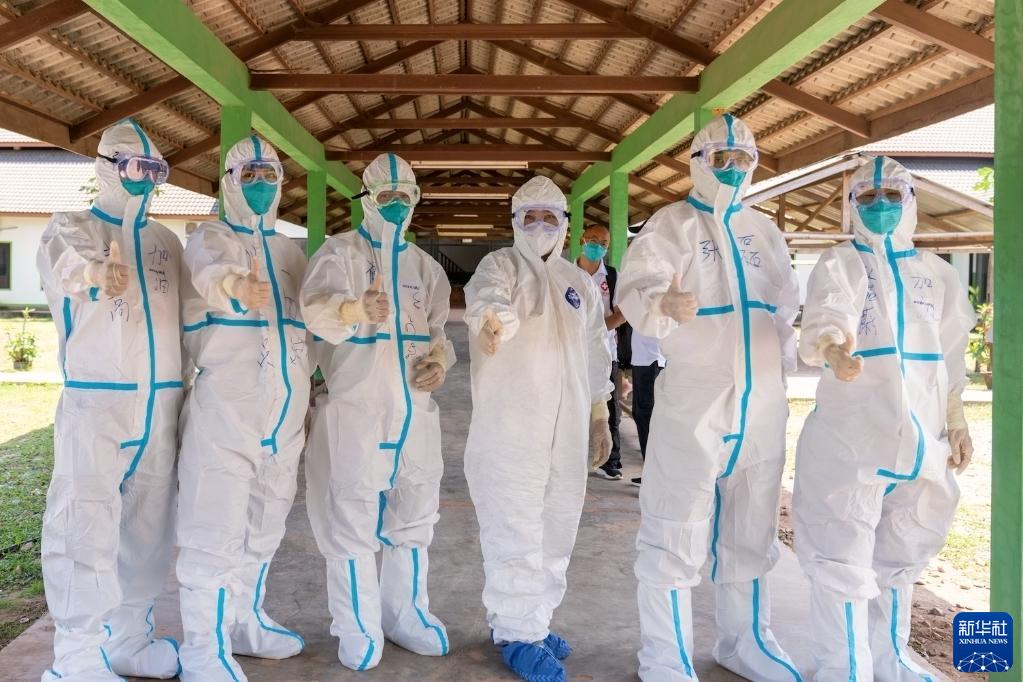 中國(guó)抗疫專家組在老撾北部烏多姆賽省準(zhǔn)備進(jìn)入新冠確診患者隔離病房(5月10日攝)。新華社發(fā)(農(nóng)麗春攝)