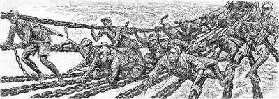 “地球的紅飄帶:長(zhǎng)征三部曲——沈堯伊連環(huán)畫作品展”上的《飛奪瀘定橋》。
