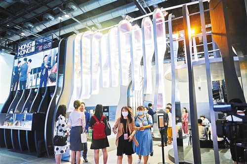 服貿(mào)會(huì)香港館展區(qū)頗具特色,通過(guò)運(yùn)用新材料制成的開放性波浪結(jié)構(gòu),寓意把內(nèi)地和香港的優(yōu)勢(shì)疊加起來(lái),共同打造更新更優(yōu)的服務(wù)貿(mào)易應(yīng)用場(chǎng)景。