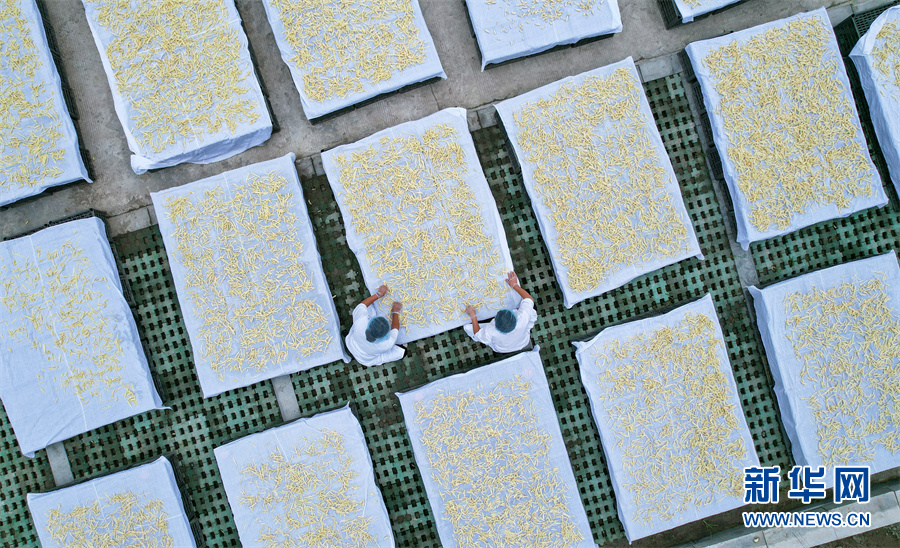 9月7日,安徽省銅陵市義安區(qū)天門鎮(zhèn)天門村,姜農(nóng)忙著晾曬白姜。新華網(wǎng)發(fā)(陳磊 攝)