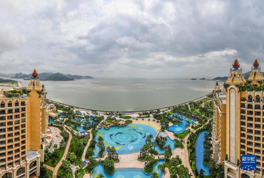 這是位于橫琴國(guó)際休閑旅游島的珠海長(zhǎng)隆海琴灣酒店海景客房和泳池(2019年4月19日攝)。新華社記者 劉大偉 攝