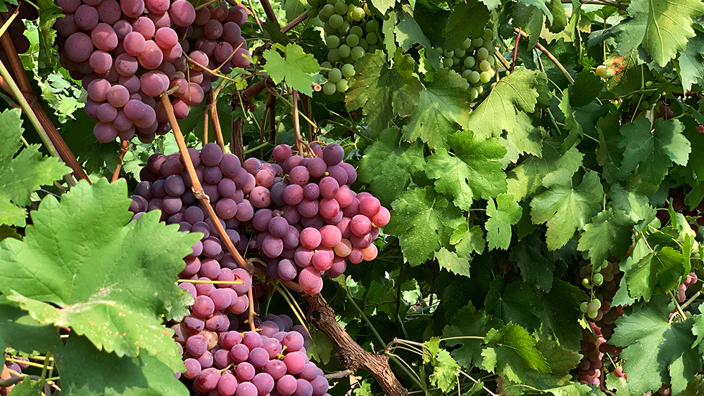 △郝家橋村溫室大棚種植的“紅地球”葡萄,特點是產(chǎn)量高、耐貯運。(總臺央視記者馬超拍攝)