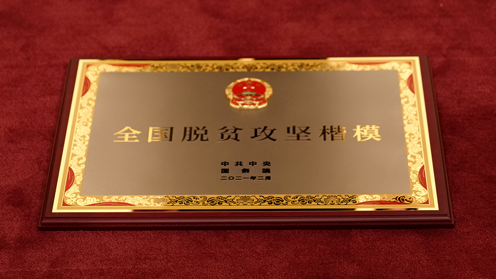 △“全國脫貧攻堅楷模”獎牌。(總臺央視記者彭漢明拍攝)