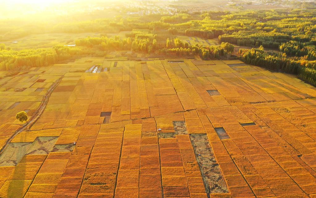 2020年10月18日在河北省灤州市古城街道蔣莊村拍攝的稻田(無人機(jī)照片)。新華社記者 牟宇 攝