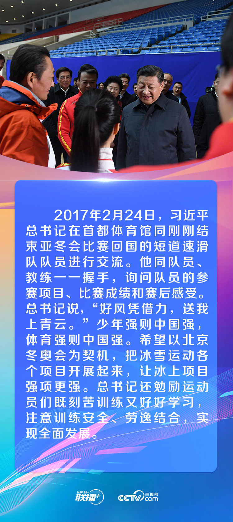 央視網(wǎng)《聯(lián)播+》特梳理習(xí)近平總書記與體育健兒的溫暖瞬間,與您一起感受總書記的體育情懷。