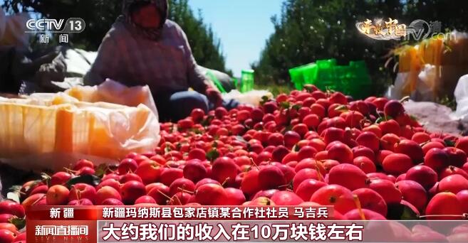 在新疆瑪納斯縣包家店鎮(zhèn)的錦繡海棠果種植基地,合作社的社員們正忙著采摘海棠果。馬吉兵是瑪納斯縣包家店鎮(zhèn)黑梁灣村村民,2017年加入了當(dāng)?shù)氐膶I(yè)合作社并成為了管理員。今年,他管理種植的28畝錦繡海棠果已進入了盛果期,經(jīng)濟效益逐步顯現(xiàn)。