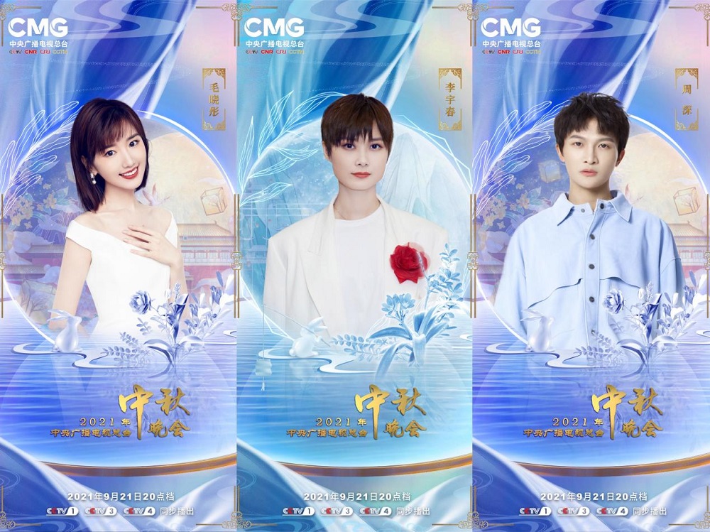同預(yù)告片一起公開的,還有今年秋晚的全部嘉賓陣容,在發(fā)布的幾組海報(bào)中,除去豐富的演出陣容外,海報(bào)主題與細(xì)節(jié)元素也格外吸睛。海報(bào)共分“清風(fēng)朗月”、“花好月圓”與“浮光月影”三個(gè)版本!扒屣L(fēng)朗月”版海報(bào)以藍(lán)紫色調(diào)為背景,毛曉彤、李宇春、周深等嘉賓在海報(bào)中央被一個(gè)象征中秋團(tuán)圓的圓環(huán)所包裹,圓環(huán)中若隱若現(xiàn)的古代建筑與海報(bào)下方的池水元素與晚會(huì)舉辦地相結(jié)合,清新中又具內(nèi)涵,仿若一股清風(fēng)撲面而來。
