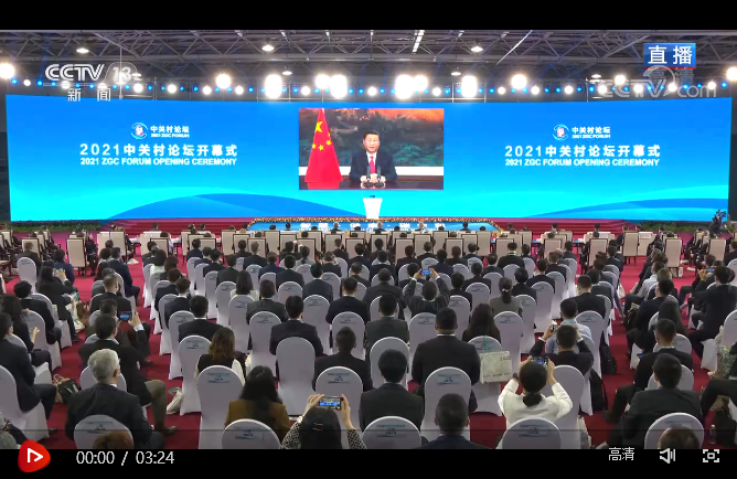 2021中關(guān)村論壇開幕式于9月24日晚在北京舉行。中共中央總書記、國家主席、中央軍委主席習(xí)近平通過視頻方式在開幕式上致辭。