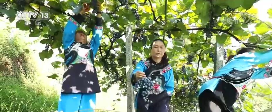 央視網(wǎng)消息:眼下,湖南懷化麻陽譚家寨鄉(xiāng)楠木橋村的刺葡萄再次迎來成熟季。紫黑色的刺葡萄掛滿枝頭,一串串飽滿豐潤,散發(fā)著誘人的醇香。高山富硒刺葡萄是當(dāng)?shù)氐奶厣a(chǎn)業(yè)之一,因枝干帶刺而得名。