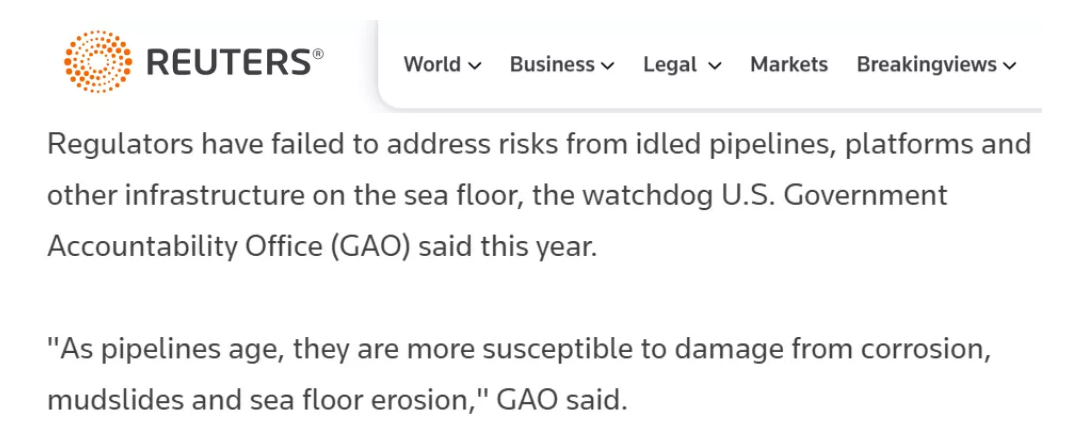 美國(guó)生物多樣性中心海洋分部主任梅月卡·阪下分析說(shuō),此次事故很可能是相關(guān)基礎(chǔ)設(shè)施老化引起的,顯而易見(jiàn),相關(guān)部門沒(méi)有盡到監(jiān)管的責(zé)任。