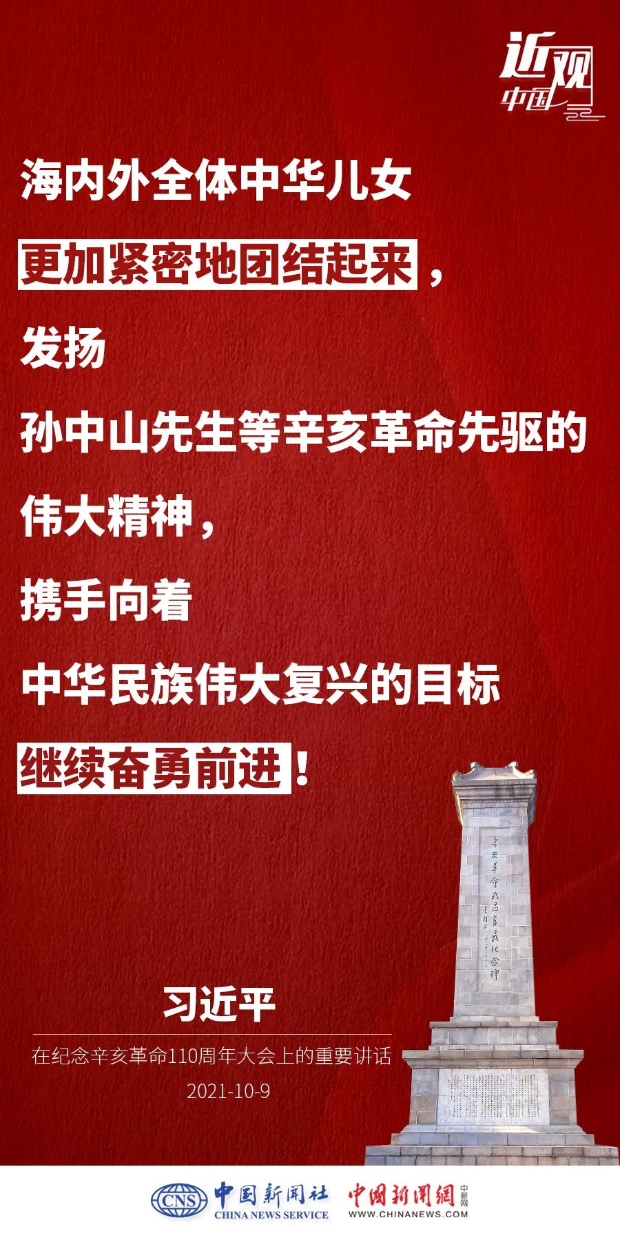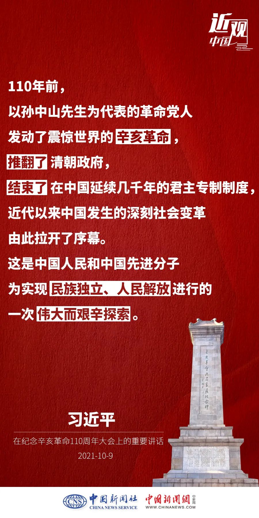 紀(jì)念辛亥革命110周年大會10月9日舉行,中共中央總書記、國家主席、中央軍委主席習(xí)近平出席并發(fā)表重要講話。他強(qiáng)調(diào)——