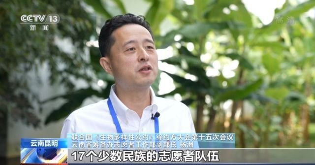 聯(lián)合國《生物多樣性公約》締約方大會第十五次會議云南省籌備辦志愿者工作部副部長 楊洲:志愿者隊伍分別來自彝族、傣族、哈尼族、傈僳族、獨龍族、白族等在內(nèi)的17個少數(shù)民族,也展示了民族文化多樣性的風(fēng)采。