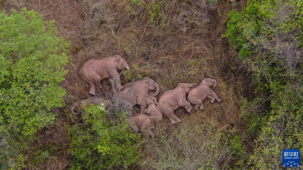 2021年6月7日在云南昆明市晉寧區(qū)夕陽彝族鄉(xiāng)拍攝的野象(無人機照片)。新華社發(fā)