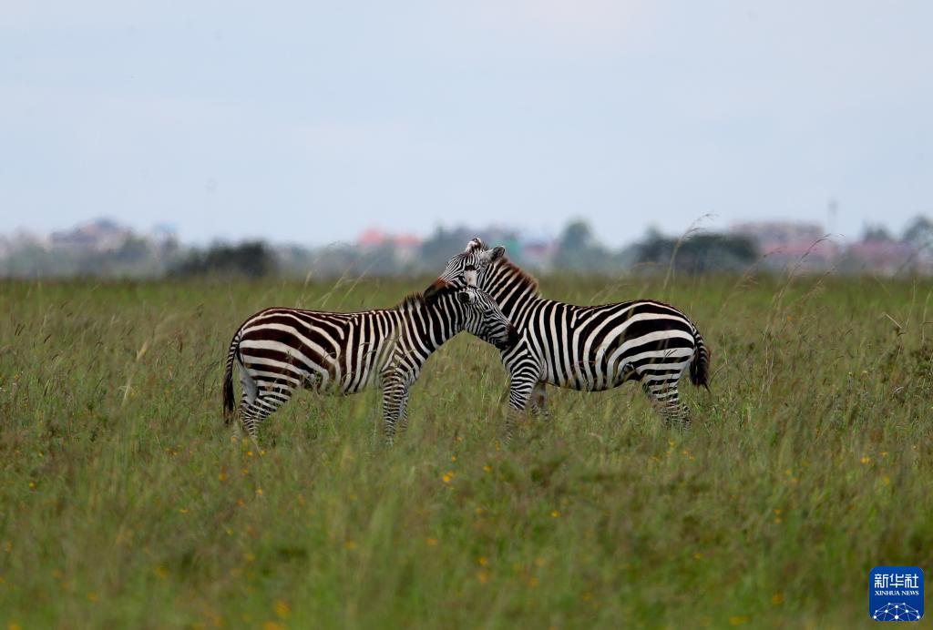 這是2021年5月19日在肯尼亞內羅畢國家公園內拍攝的斑馬。新華社記者 龍雷 攝