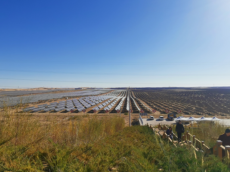 16日下午,記者們來(lái)到了位于庫(kù)布其沙漠中段達(dá)拉特光伏基地,這里天空碧藍(lán),陽(yáng)光金黃,空氣清新,視野遼闊,為光伏產(chǎn)業(yè)發(fā)展提供了優(yōu)越的自然條件。