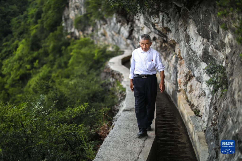 距離遵義會議會址100公里的遵義市播州區(qū)平正仡佬族鄉(xiāng)團(tuán)結(jié)村,共產(chǎn)黨員黃大發(fā)帶領(lǐng)群眾,歷時30余年,靠著鋤頭、鋼釬、鐵錘和雙手,硬生生在絕壁上鑿出一條“生命渠”,結(jié)束了當(dāng)?shù)亻L期缺水的歷史。