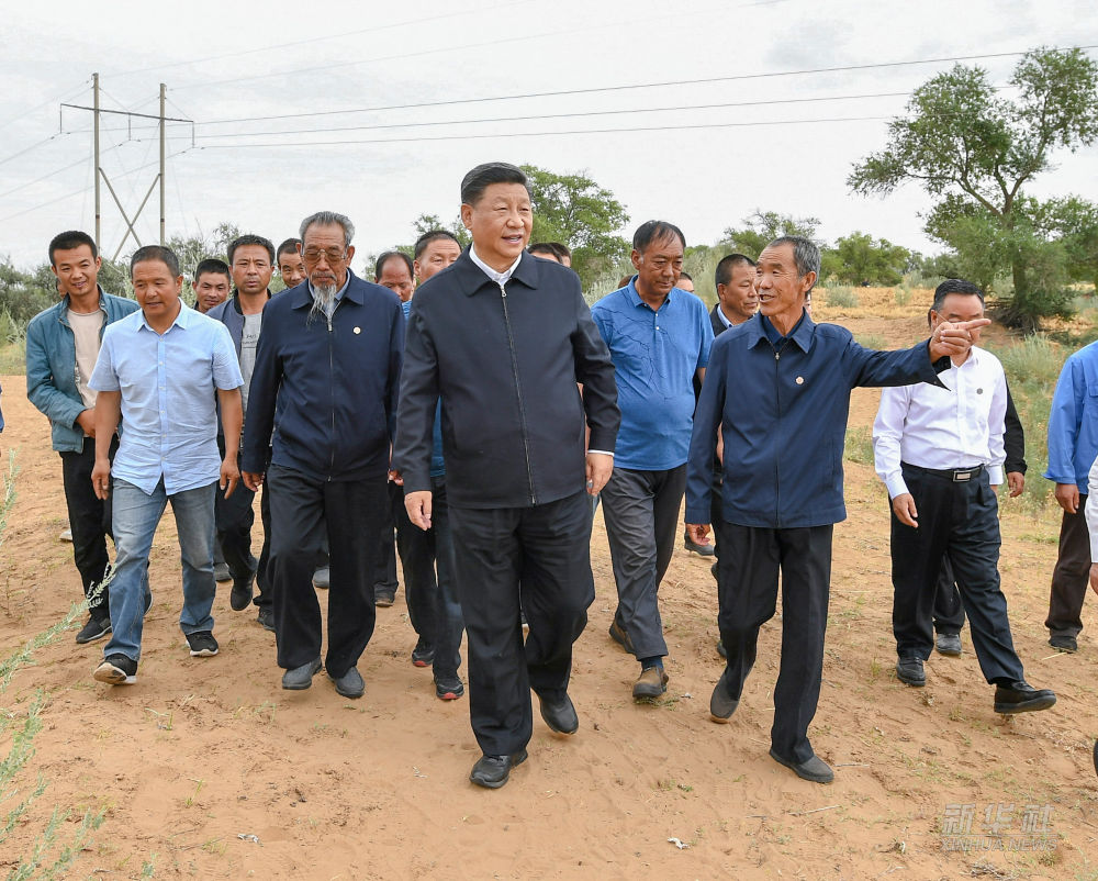↑2019年8月21日,習(xí)近平在甘肅省武威市古浪縣八步沙林場察看林場整體風(fēng)貌,聽取武威市防沙治沙整體情況匯報和八步沙林場“六老漢”三代人治沙造林的感人事跡。