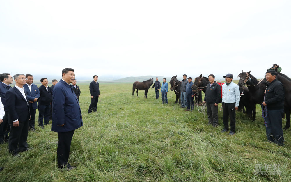 ↑2019年8月20日,習(xí)近平在甘肅省張掖市山丹縣山丹馬場考察調(diào)研,了解祁連山生態(tài)環(huán)境修復(fù)保護等情況。