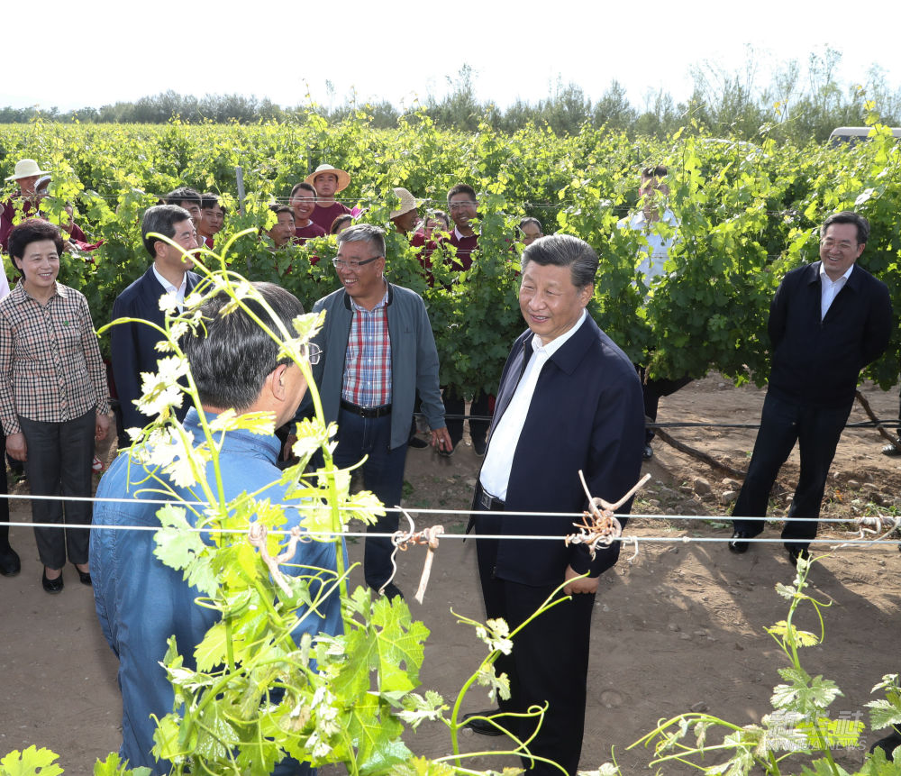 ↑2020年6月9日,習(xí)近平在寧夏回族自治區(qū)銀川市賀蘭山東麓葡萄種植園,了解加強賀蘭山生態(tài)保護情況。