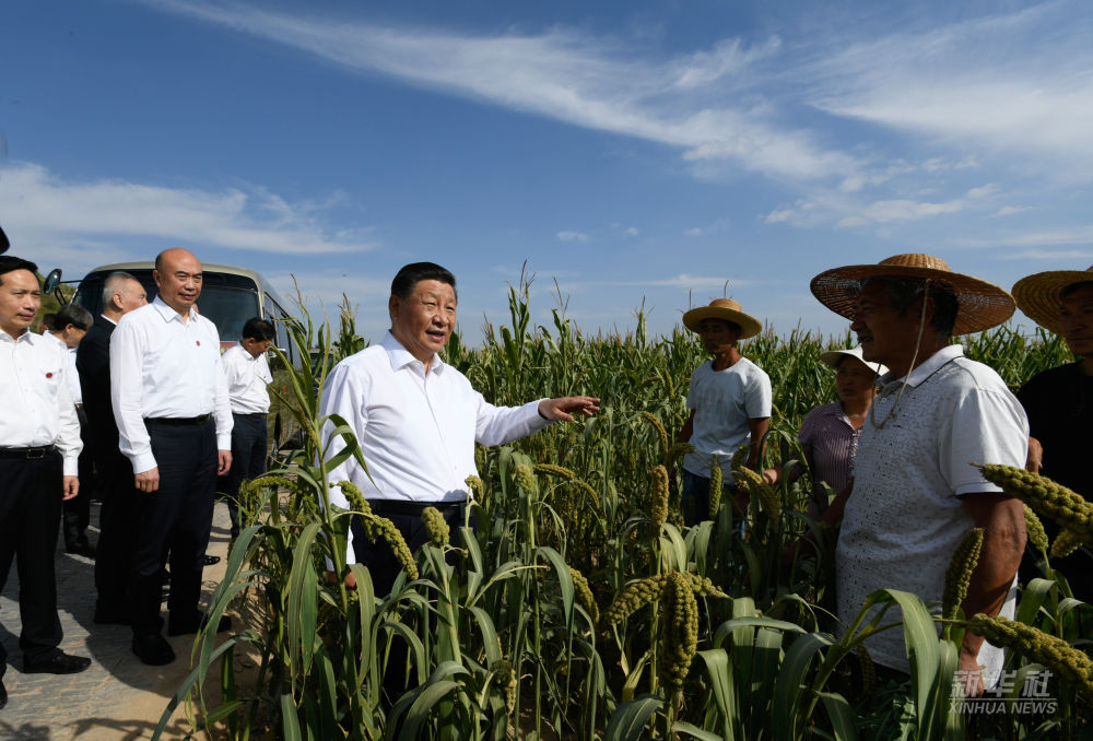 ↑2021年9月13日,習(xí)近平在陜西省榆林市米脂縣銀州街道高西溝村臨時下車,察看糧食作物長勢,同正在田間勞作的老鄉(xiāng)拉家常,詢問他們生產(chǎn)經(jīng)營、家庭收入、醫(yī)療保障、子女上學(xué)就業(yè)等情況。