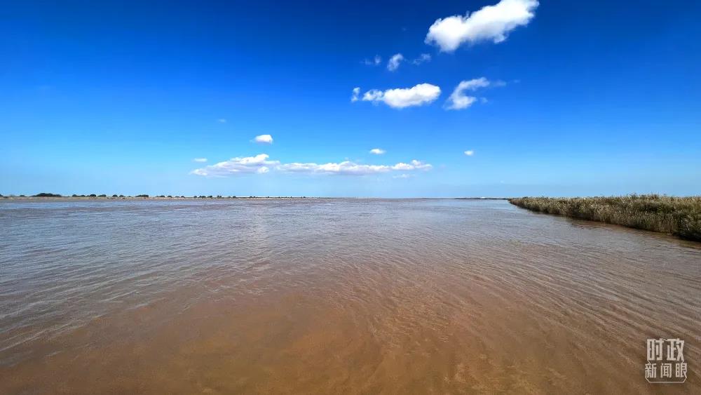 △山東東營(yíng),泛黃之水奔涌入海。(總臺(tái)央視記者王鵬飛拍攝)