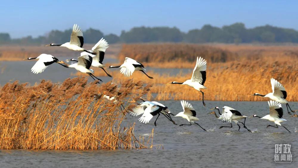 △來(lái)黃河三角洲越冬的丹頂鶴群。(資料圖)